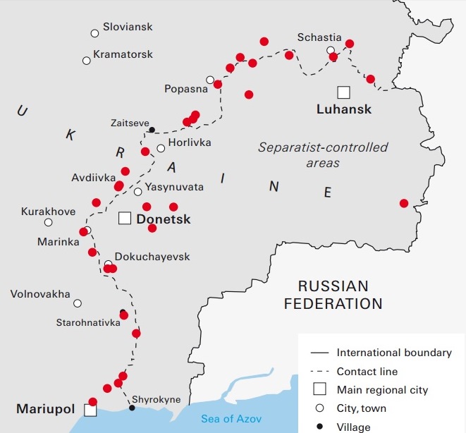 У звіті також вказано конкретні місця на карті, де люди підривалися на мінах у 2016 році: